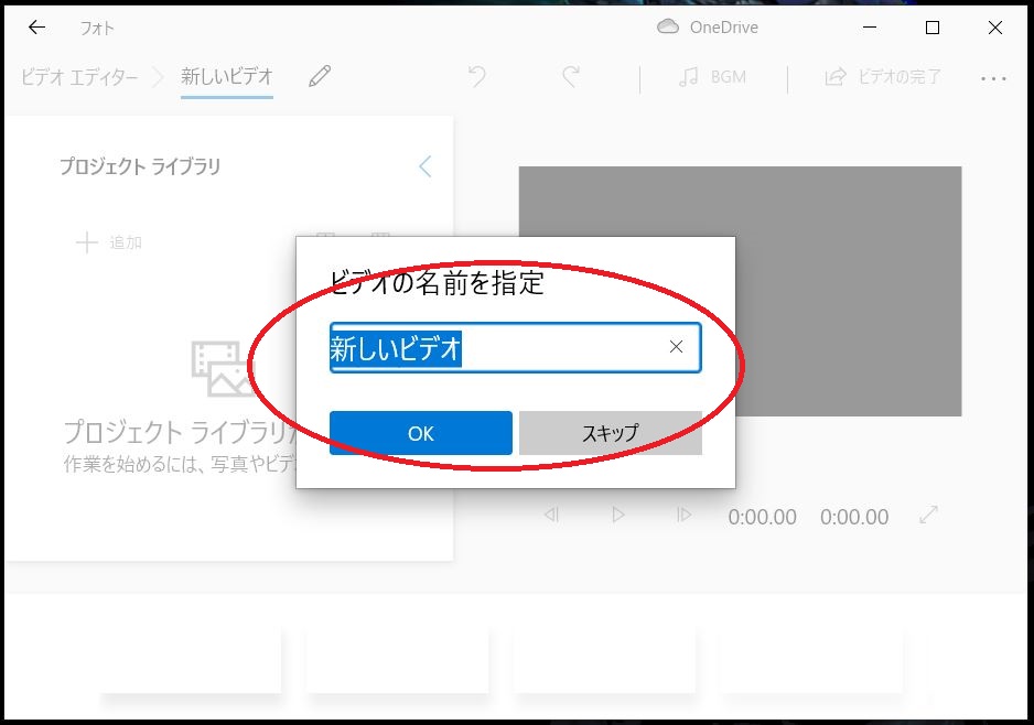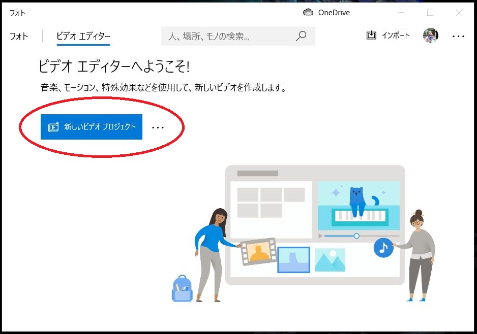 「新しいビデオプロジェクト」をクリックして次に進みます。