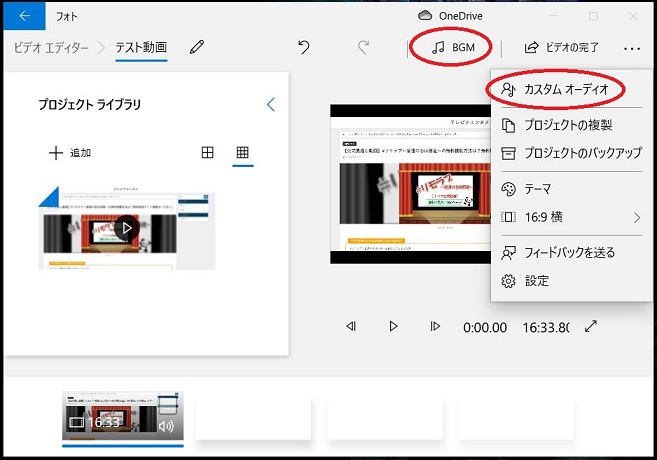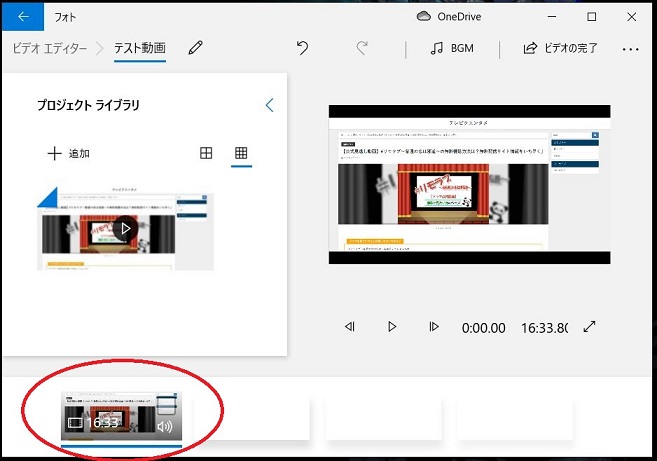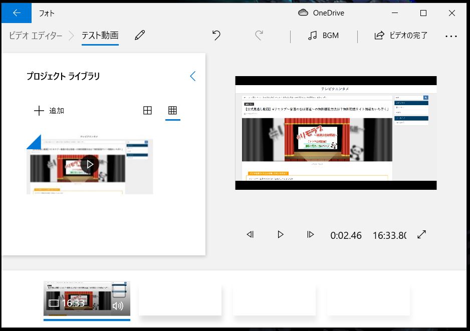 Windows10に入っているビデオエディターで無料で簡単にBGMを挿入できました。