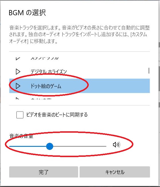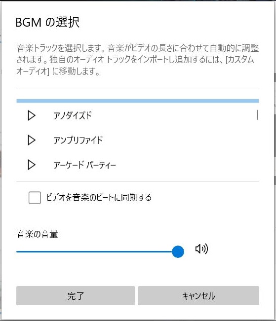 ここではBGMを選択し、用意されている音楽から選択することにしました。