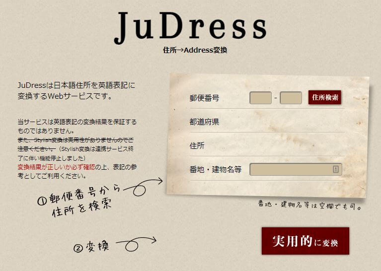 住所の英語表記に自信がない、分からない場合は下記のサイトで英語変換してくれます。