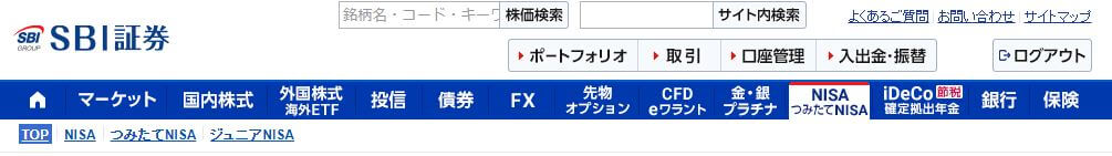 ここではSBI証券でジュニアNISAの積立設定を行う手順を紹介します。