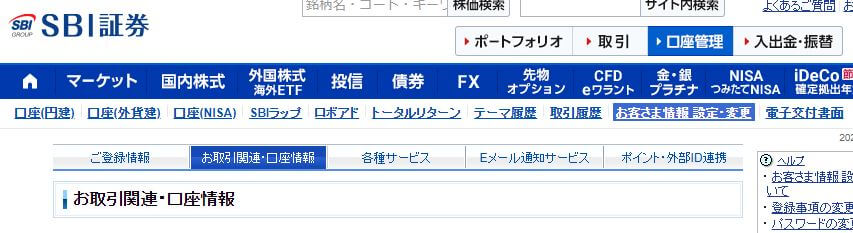 ①口座管理→②お客様情報 設定・変更→③お取引関連・口座情報