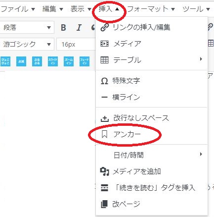 ①ワードプレスを使っている場合はアンカーリンクを設定したい箇所にマウスカーソルをあわせる。