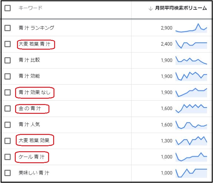 売りたい案件が大麦若葉を使っていない。