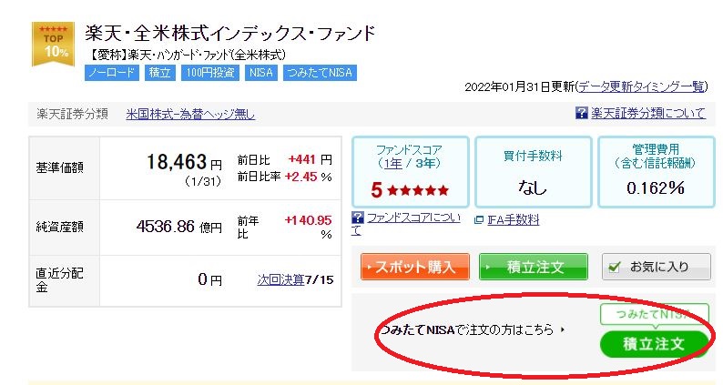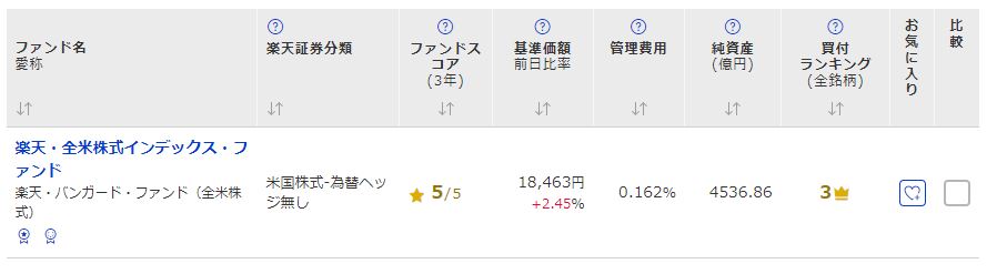 例えば楽天・全米株式インデックス・ファンドを選択するとします。