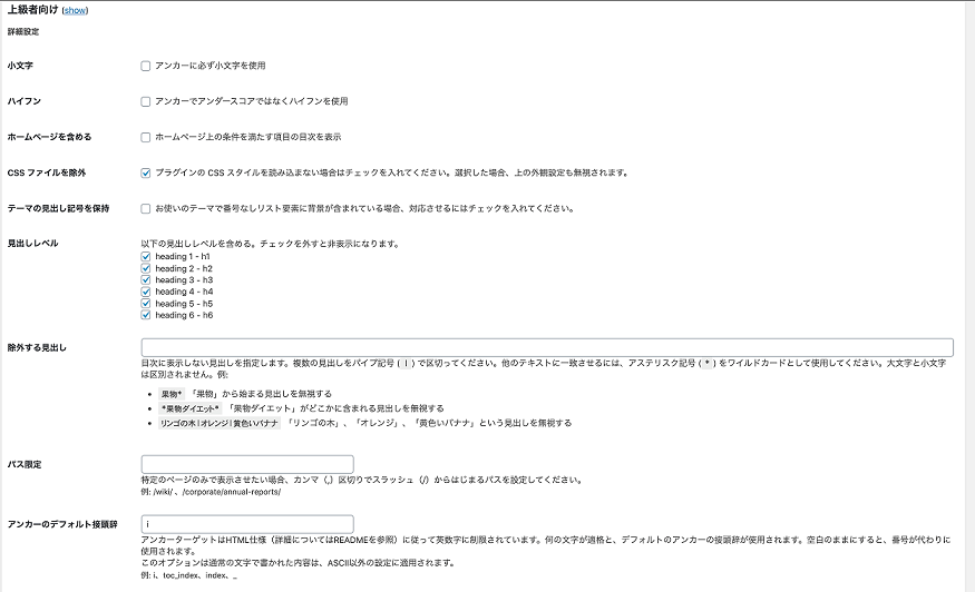 アンカーのデフォルト接頭辞・・目次タイトルごとのURLの接頭辞を指定する場合は利用